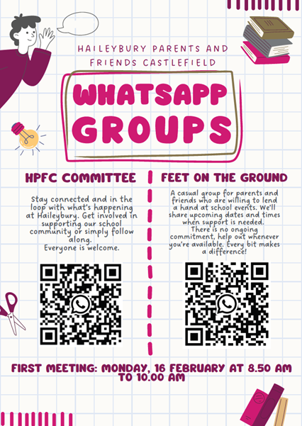 Join our WhatsApp groups to stay up –to date and get involved.Everyone is welcome!