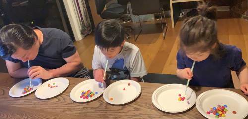 There were adults and kids being wrapped in toilet paper, stacking cups and aiming to get the most Smarties transferred from one plate to the other. It was a lot of fun!