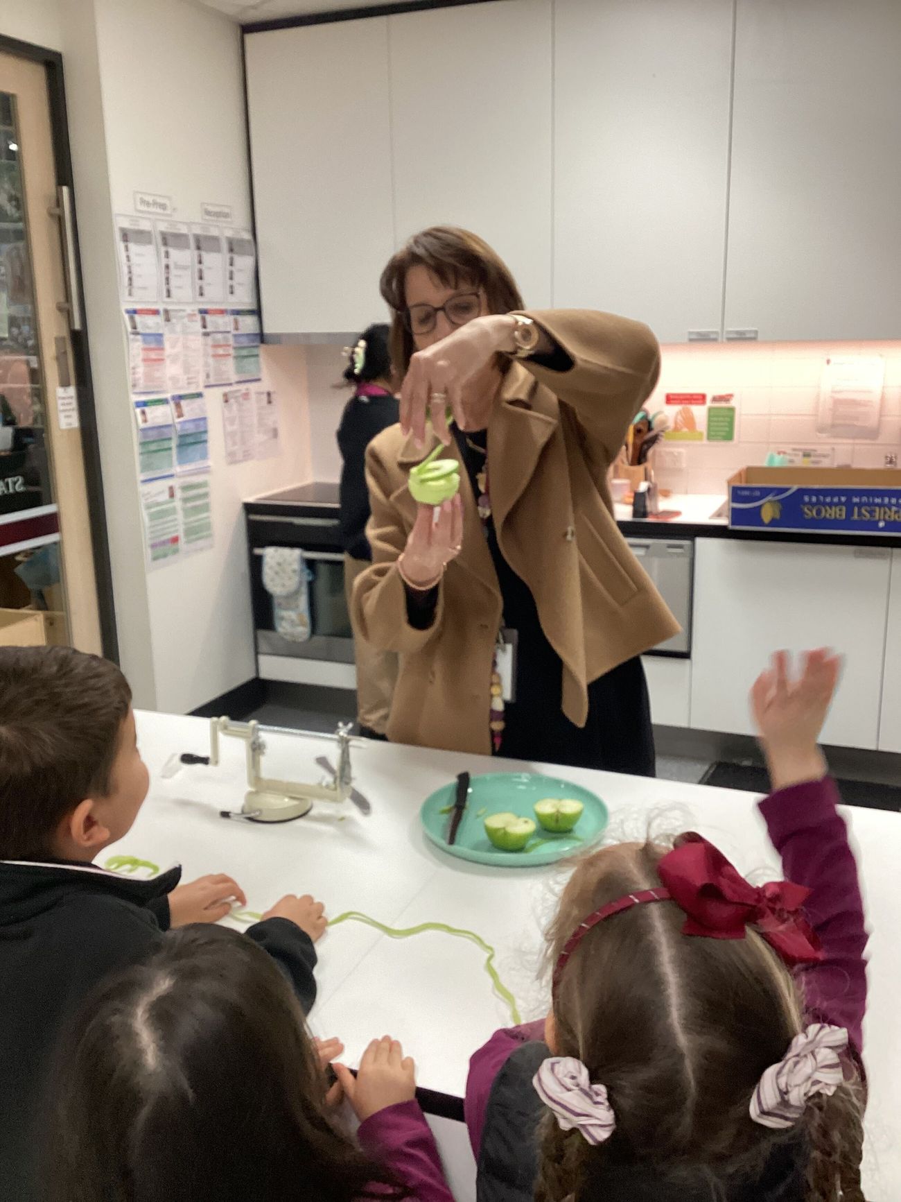 As part of our focus on healthy eating, ELC children have enjoyed making and eating apple slinkys with Mrs Merrick, who introduced the children to a spiral cutting machine where we used whole apples that transformed into fun, curly shapes.
