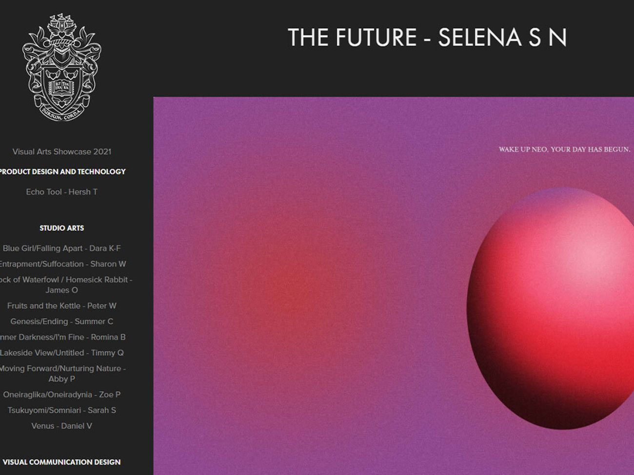 It is my privilege to step into the role of Head of Visual Arts and to invite you to explore the work of Units 3 and 4 Media, Product Design and Technology, Studio Arts and Visual Communication Design online, and also Years 9 to 12, in the Ralph W. Hill Memorial Gallery and Sholto Black Visual Arts Building at Keysborough.
