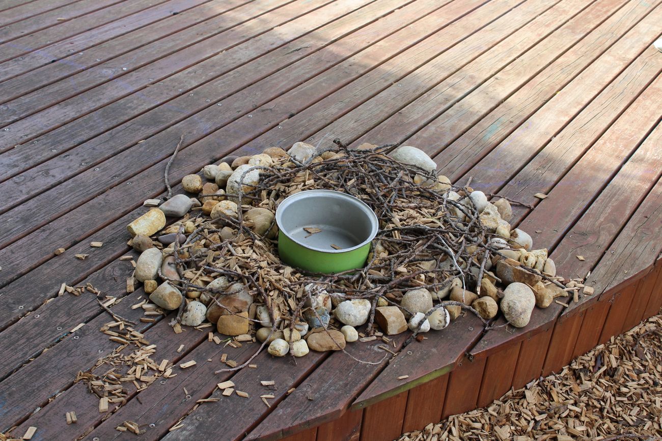 Newlands ELC children have been intrigued by visits to their playground by two rainbow lorikeets which have created a nest in the hollow of an elm tree. The educators have discussed the habitat and diet of the birds as they visit the playground each day, adding to their nest.