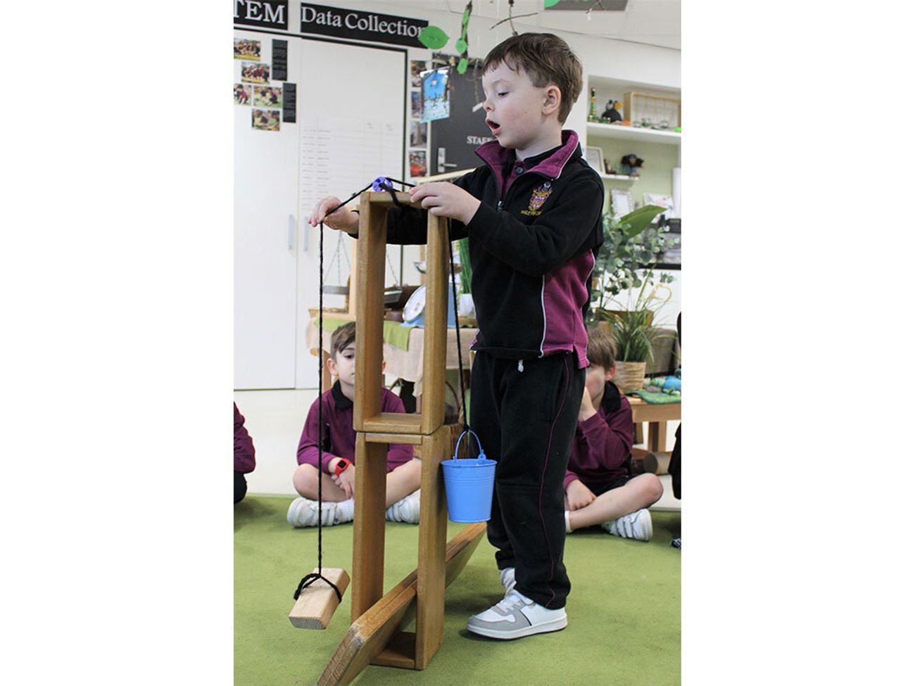 Pre-Prep children have also explored their interest in machines and have learned about energy and motion. They created their own pulley systems and experimented with different tools to gain a better understanding of how machines actually work.